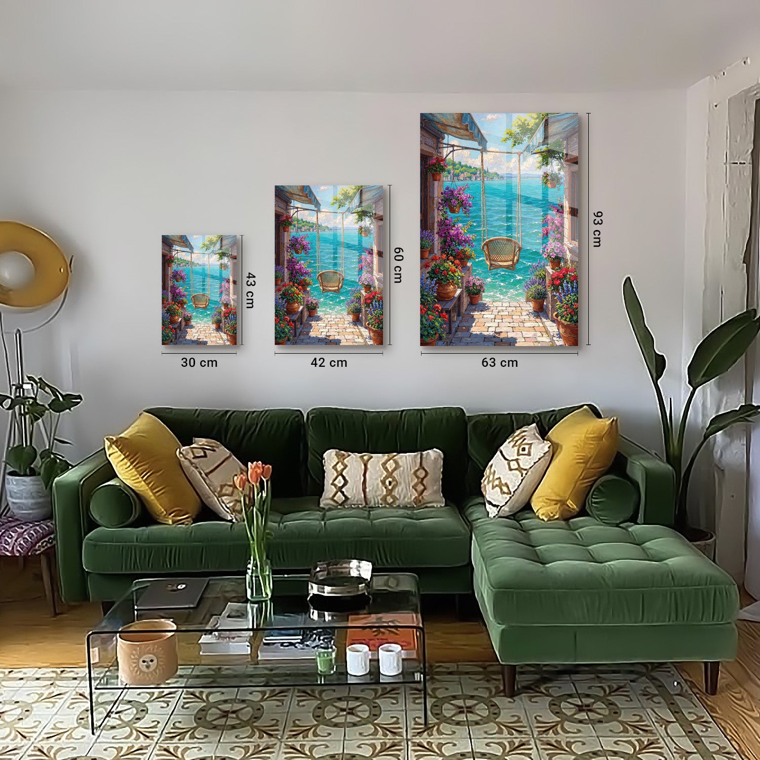 - Cam tablolarımızın arkasında bir askı aparatı mevcuttur. Duvar tipinize uygun bir çivi yardımı ile ürünümüzü duvarınıza kolaylıkla asabilirsiniz. (Yalnızca 63x63 cm 93x93 cm ölçülerimizde çift askı aparatı mevcuttur).